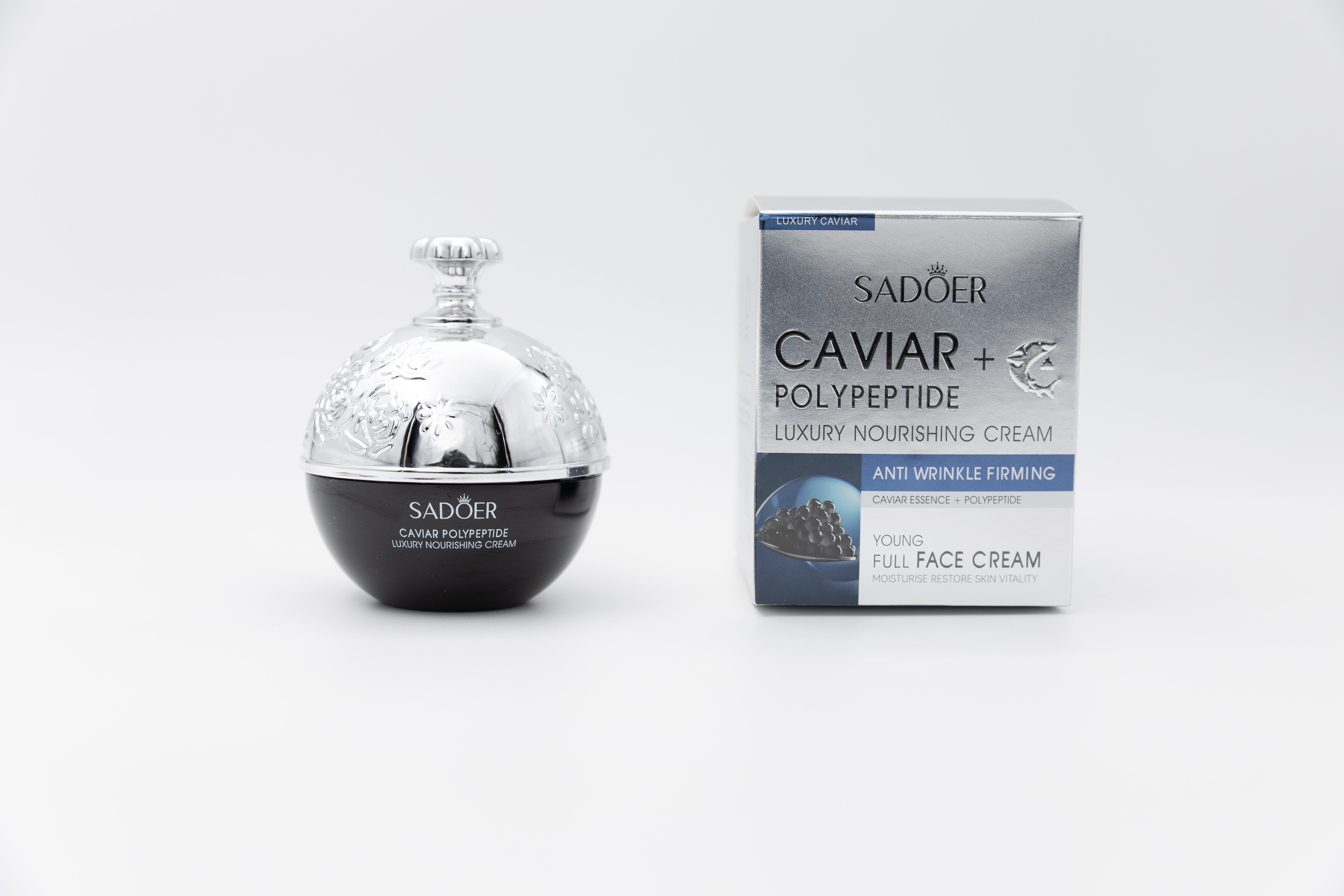 Îmbogățită cu extract de caviar și colagen, crema SADOER redă elasticitatea pielii, netezește liniile fine și oferă hidratare intensă pentru un ten vizibil mai catifelat și luminos.